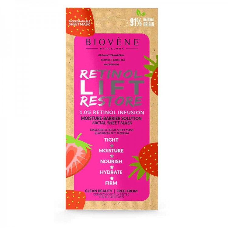 Маска со ретинол и органска јагода која ја навлажнува, затегнува и хидрира кожата, подобрувајќи ја нејзината заштитна бариера. Ја остава кожата мека и мазна.