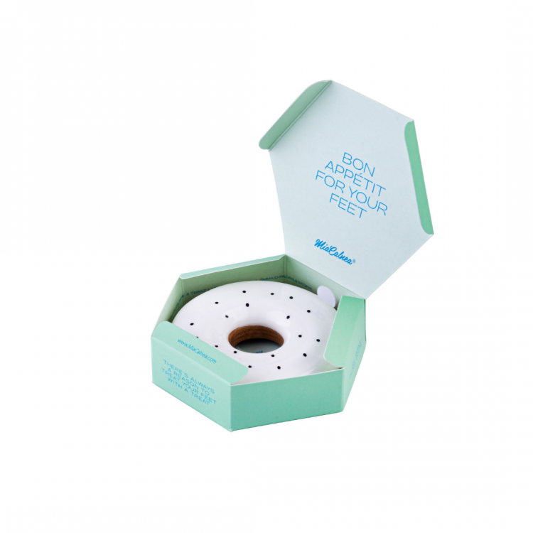 DONUT WORRY FOR FEET™ FLUFFY е уникатна и неконвенционална турпија за стапала. Производот е дизајниран за луѓе кои се грижат за своите стапала, а во исто време го ценат уникатниот дизајн. Рачно нанесената „глазура“ прави секоја КРОФНА да е единствена!