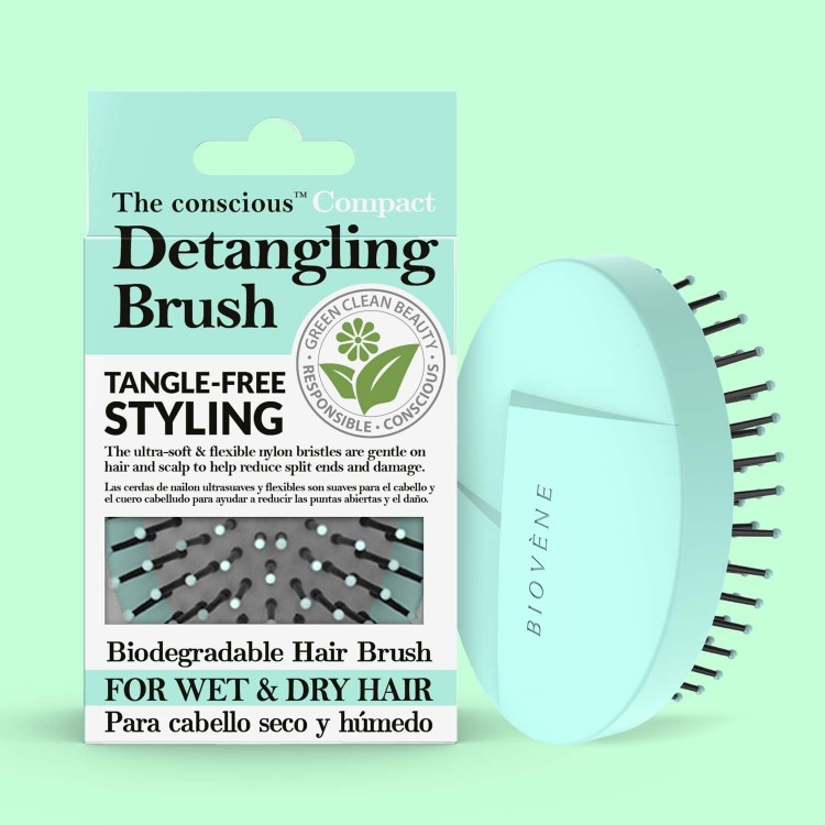 Биоразградлива четка за сите типови коса, за лесно и брзо расчешлување, сјај, измазнување и волумен. Ултра меките и флексибилни најлонски влакна се нежни за косата и скалпот и може да помогнат во намалување на оштетувањето на косата и расцветани врвови